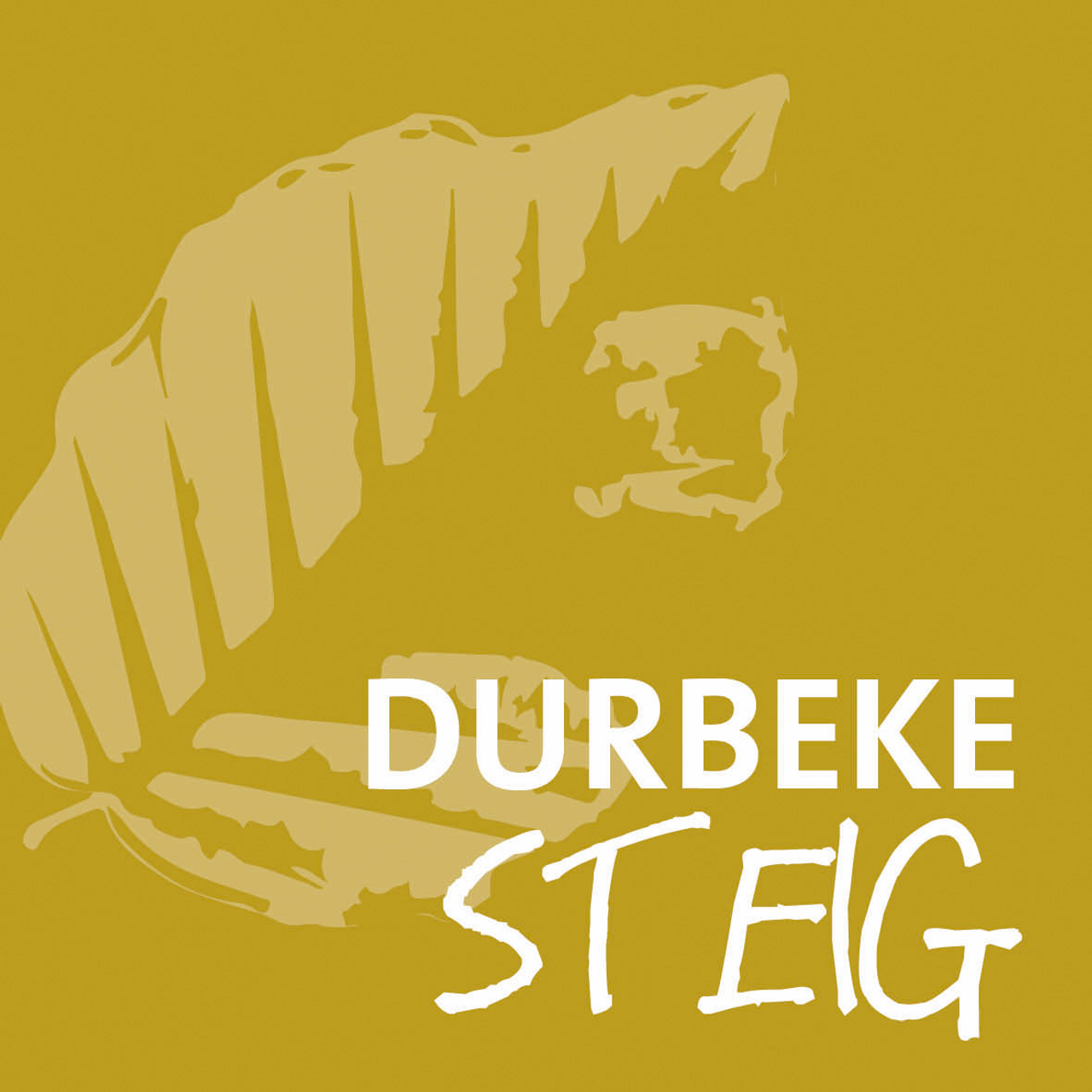 Wegmarkierung: "Durbeke Steig" (weiße Schrift auf olivfarbenen Grund)