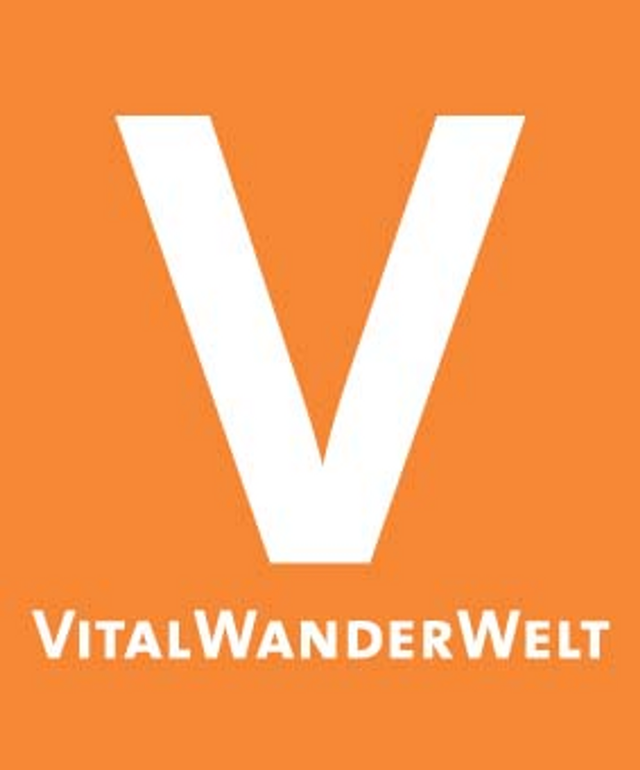 Der Wanderweg ist mit einem weißen V auf orangem Grund gekennzeichnet und wird gegen den Uhrzeigersinn begangen.