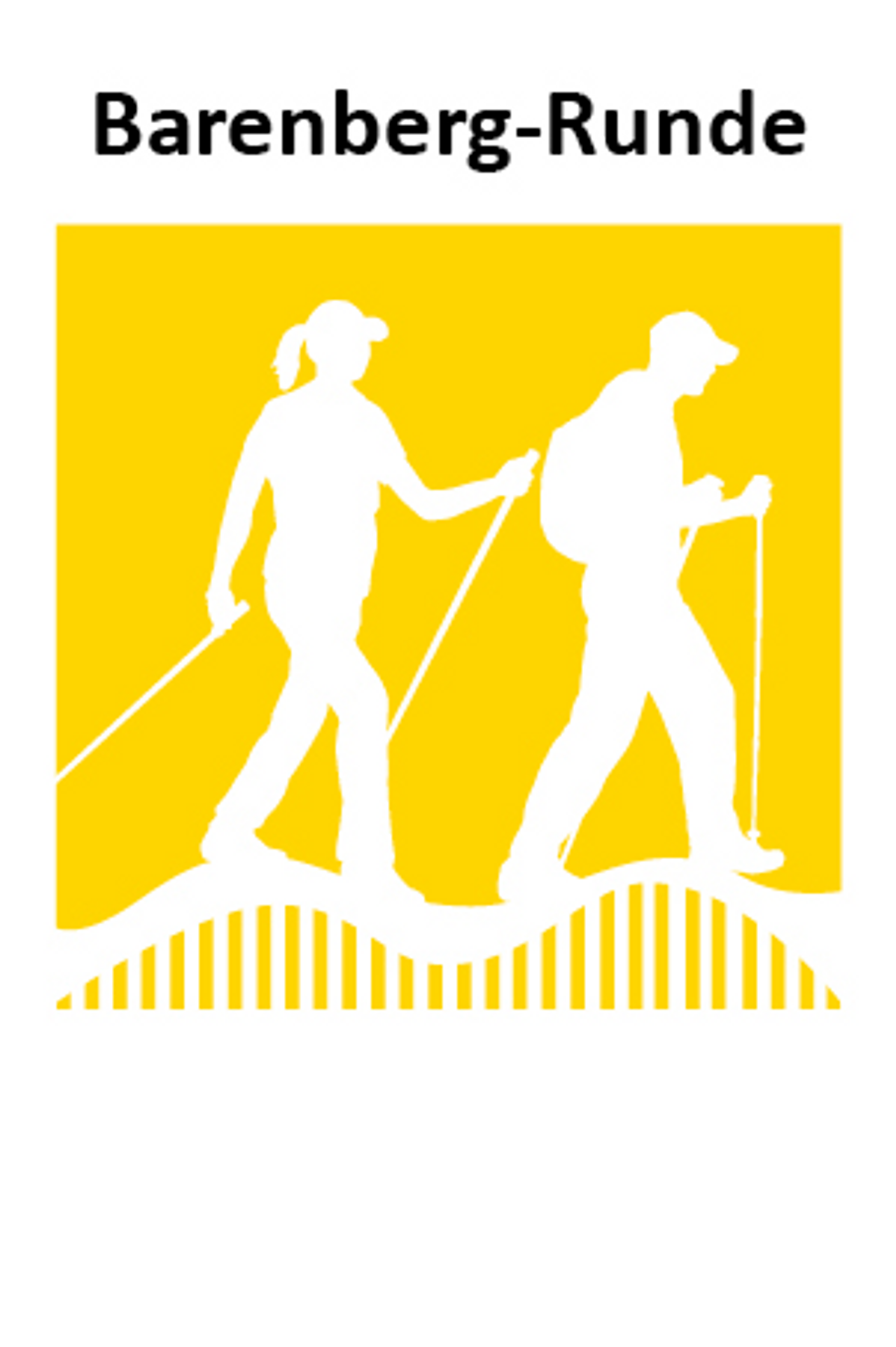 Die Rundtour ist in beide Richtungen gut ausgeschildert. Bitte folgen Sie dem gelben Markierungszeichen mit den Nordic Walkern und der Aufschrift "Barenberg-Runde".