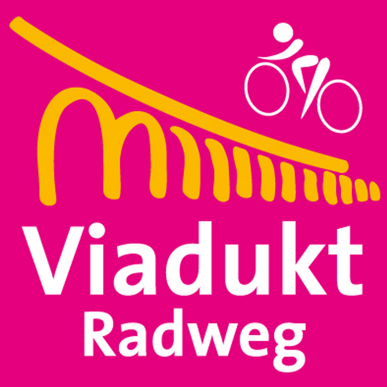 Der Weg ist durchgängig mit dem pinkfarbenen Logo "Viadukt Radweg" beschildert.